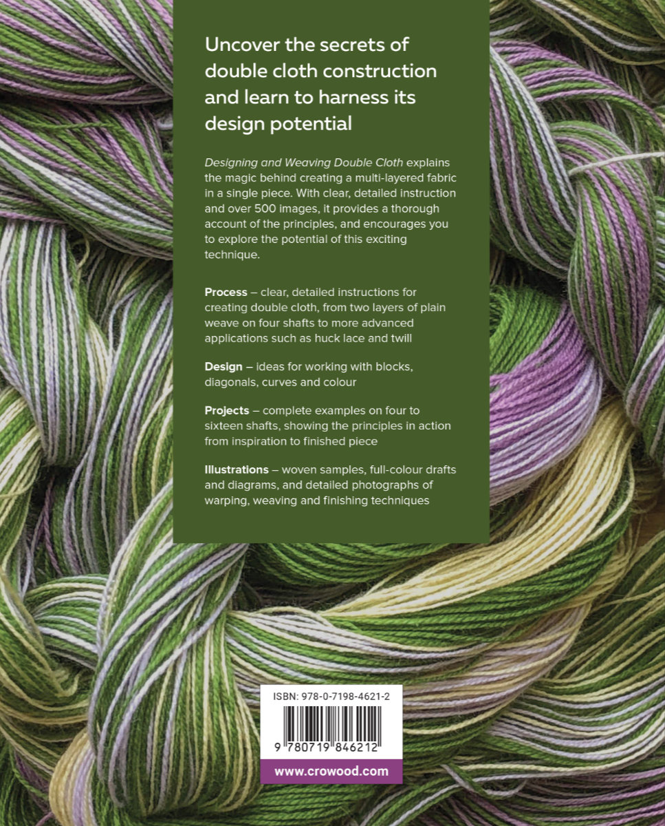 Yep, this is a substantial (224-page) hardback book about designing and weaving double cloth. It’s a book that aims to de-mystify the structure of double cloth without taking away the magic. It’s a book of theory, practice and many, many examples. It’s not a project book, even though it does include several fully-specified projects. My intention is to help you design and weave your own projects.